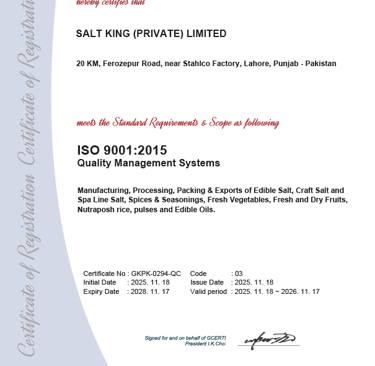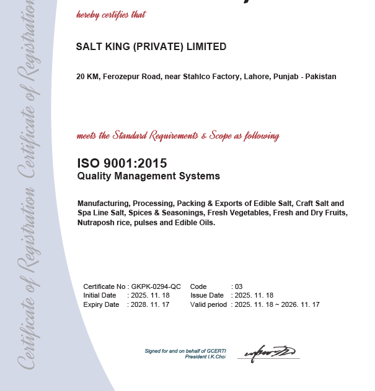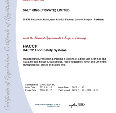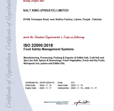 This section showcases the credentials that validate our sourcing, processing, and packaging, ensuring every Salt King product meets the highest levels of authenticity, safety, and trust.