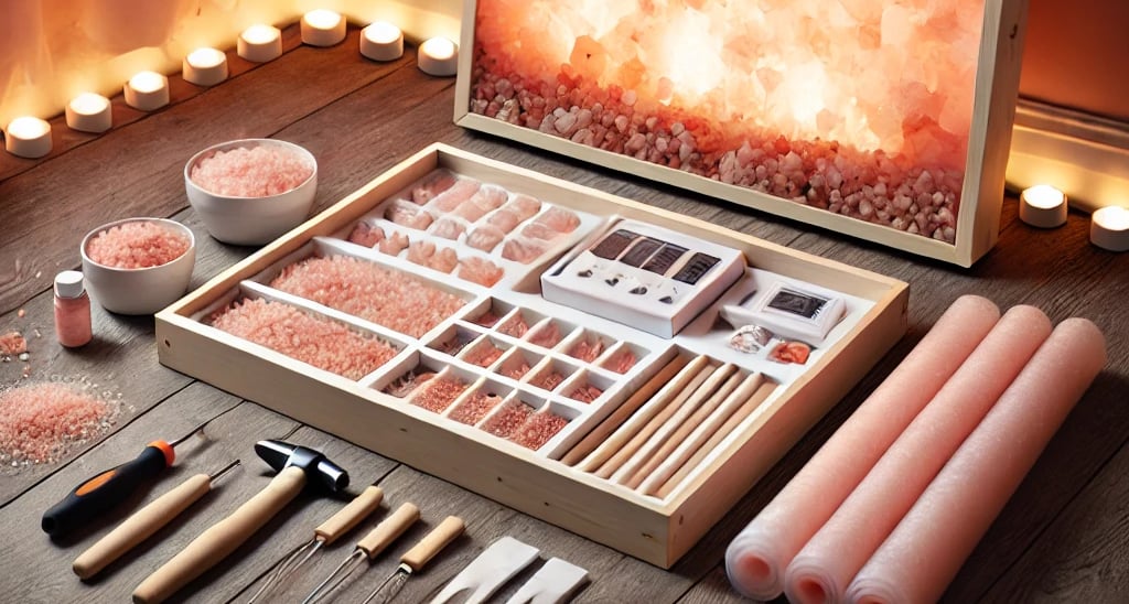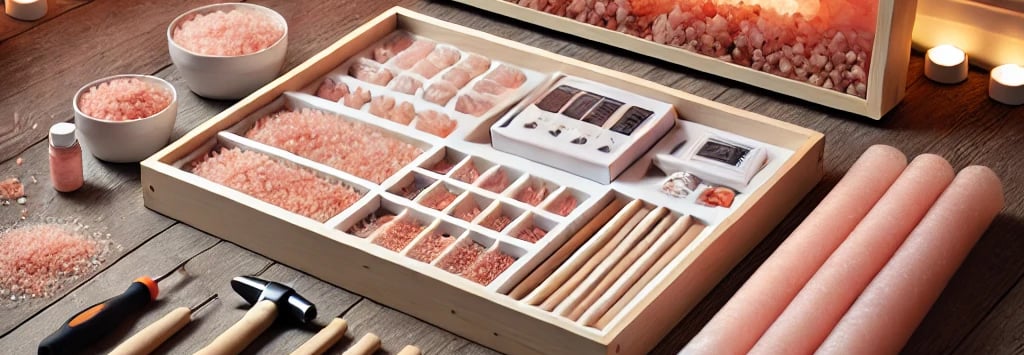 DIY kits are designed for flexibility — choose from different panel sizes and lighting styles to match your space. The natural pink hue and crystal texture of the salt panels create a visually striking and health-boosting environment.