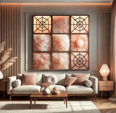 Our salt wall hangings feature intricate patterns carved from natural salt crystals.