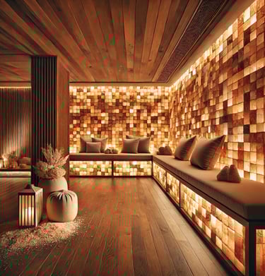 Our salt wall installations create a visually striking effect while improving air quality through natural ionization.