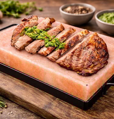 Our Himalayan Salt Cooking Slab transforms the way you cook. Designed for high-heat searing and grilling, it distributes heat evenly while gently seasoning food as it cooks. Ideal for meats, seafood, and vegetables, it locks in moisture and delivers bold, natural flavor without overpowering spices.